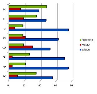 Resultados generales referidos a competencias y niveles: