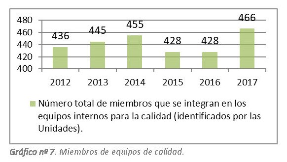 Número de miembros que se integran en los equipos internos de calidad. Gráfico nº 7 |