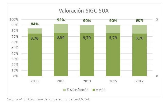 El SIGC-SUA es un sistema de gestión normalizado respecto a un referente y con vocación de permanencia, por lo que está sometido a procesos de certificación externa y de adaptación. Esto ha incidido en la revisión permanente del diseño, ampliando los procesos, desarrollando planes de comunicación y seguridad documental, potenciando la planificación o sistematizando la gestión de los riesgos.